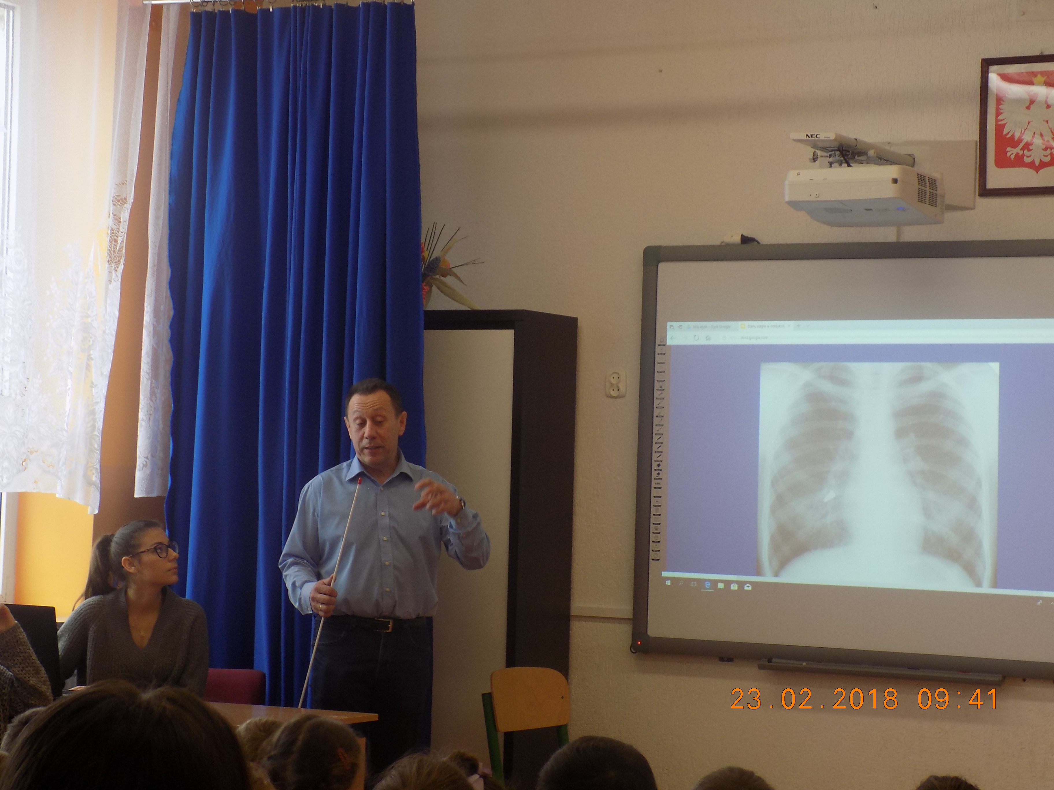 W miniony piątek mieliśmy okazję gościć w naszej szkole znanego i cenionego otolaryngologa pana Leszka Krzysztofa Grzywnę. Pan doktor jest absolwentem naszej szkoły i z wielką chęcią zgodził się powrócić na kilka godzin do swojej dawnej szkoły, aby przybliżyć naszym uczniom najważniejsze informacje dotyczące swojej pracy i dziedziny medycyny, w której się specjalizuje.