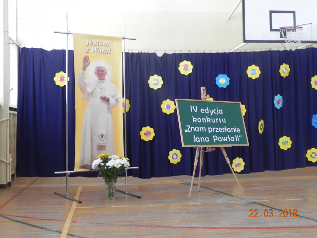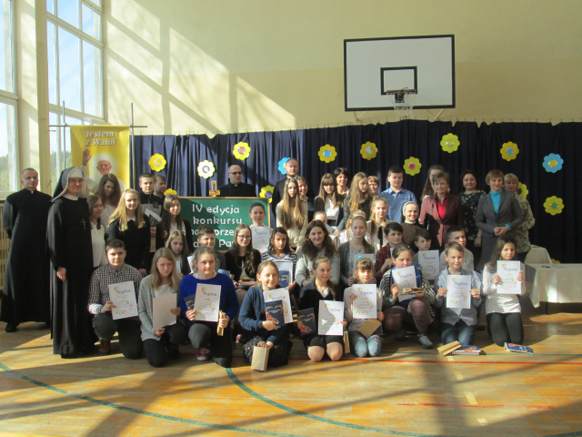 "Znam przesłanie Jana Pawła II" to hasło konkursu wiedzy o Janie Pawle II, który odbył się 22 marca w Zespole Szkół Samorządowych w Tereszpolu Zaorendzie. Wśród 44 uczestników byli także nasi uczniowie: Monika Brytan i Rafał Czajka z klasy VI oraz Julia Czajka i Wiktoria Kaziród z klasy VII. Bardzo dobrą znajomością treści oraz przesłania związanego z naszą ojczyzną pozostawionego nam przez Jana Pawła II wykazała się Wiktoria Kaziród, która zajęła wysokie III miejsce w kategorii klas VII i gimnazjum.