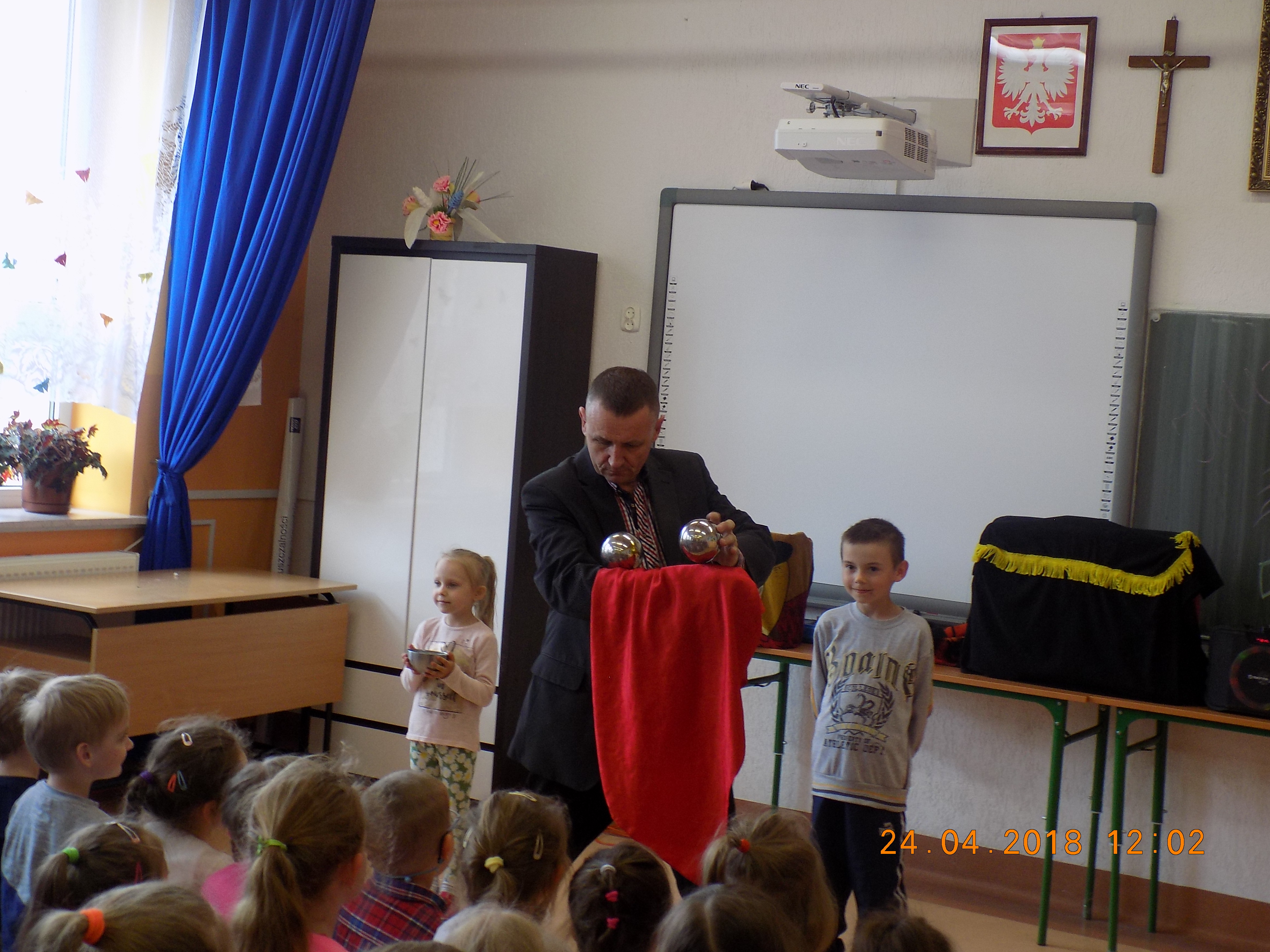 Do swoich sztuczek magik zapraszał chętnych uczniów. Wszyscy zebrani mogli z bliska przyglądać się wykonywanym sztuczkom, sprawdzali rekwizyty i nawet próbowali swoich sił jako magicy. Pokazom towarzyszyło zdumienie oraz śmiech.