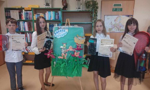2024-05-28 Pokazali, że czerpią radość z czytania We wtorek 28 maja czworo uczniów wyłonionych wcześniej w eliminacjach szkolnych (Katarzyna Marzec i Weronika Bielak z kl. IV, Lena Leśniewska z kl. V oraz Piotr Grzywna z kl. VI) uczestniczyło w gminnym etapie konkursu "Radość czytania". Odbył się on w Bibliotece Publicznej we Frampolu. Nasi reprezentanci zmierzyli się ze swoimi rówieśnikami ze szkół w Teodorówce i we Frampolu. Zadaniem uczestników było głośne przeczytanie fragmentu wybranej książki należącej do literatury dziecięcej i młodzieżowej. Jesteśmy dumni z naszych uczniów, bowiem wszyscy wykazali się zrozumieniem przekazywanych treści, zadbali o odpowiednią intonację, tempo i głośność czytania. Po burzliwych obradach jury przyznało dwójce naszych uczniów - Lenie Leśniewskiej oraz Piotrowi Grzywnie - wyróżnienia, natomiast Katarzyna Marzec zdobyła tytuł LAUREATA i tym samym awansowała do finału powiatowego, który odbędzie się już niebawem w Miejskiej i Powiatowej Bibliotece Publicznej w Biłgoraju. Gratulujemy i mocno trzymamy kciuki za Kasię! czytaj dalej »