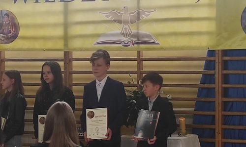2024-04-27 Powiatowy Konkurs Wiedzy Biblijnej z Ewangelii świętego Łukasza 23 kwietnia w Szkole Podstawowej nr 5 w Biłgoraju odbył się VII Powiatowy Konkurs Wiedzy Biblijnej z Ewangelii świętego Łukasza. W zmaganiach wzięło udział 61 uczniów ze szkół z terenu powiatu biłgorajskiego. Pośród nich znaleźli się także uczniowie z naszej szkoły: Piotr Grzywna i Szymon Bryła z klasy VI. Poziom konkursu był bardzo wysoki, a zwycięzcy wykazali się dogłębną znajomością Pisma Świętego. Nasi uczniowie także pokazali, że Ewangelia św. Łukasza nie jest im obca, za co otrzymali dyplomy i nagrody książkowe. czytaj dalej »