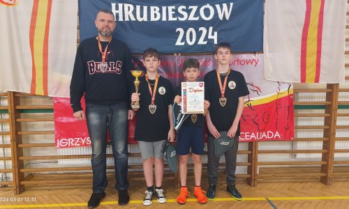 2024-03-05 Z małej szkoły na podium wojewódzkie Nasza drużyna w składzie: Dominik Bryła, Sebastian Pacyk i Kacper Janowski pod opieką Pana Łukasza Krawca pokazała, że potrafi wygrywać turnieje. Mowa tutaj o finałach województwa lubelskiego w drużynowym tenisie stołowym, które odbyły się 1 marca w Hrubieszowie. Do rywalizacji stanęło 12 zespołów z kategorii wiekowej 2011 i młodsi. Ekipa z naszej szkoły przegrała jedno spotkanie w całych zmaganiach i ostatecznie zajęła III miejsce. W drodze do zdobycia podium nasi uczniowie rywalizowali z chłopakami na co dzień trenującymi w różnych klubach tenisowych, a mimo to poradzili sobie świetnie. Udowodnili tym samym, że nie ważne jest to, z jakiej szkoły lub miejscowości jesteś i czy trenujesz w klubie, czy nie. Sukces można osiągnąć dzięki determinacji i zaangażowaniu oraz ciężkiej pracy. Dziękujemy chłopcom za emocje, jakich nam dostarczyli i gratulujemy osiągniętego wyniku. czytaj dalej »