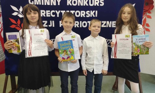 2023-11-22 Sukcesy w gminnym konkursie recytatorskim 21 listopada w Samorządowym Zespole Szkolnym we Frampolu odbył się Gminny Konkurs Recytatorski Poezji Patriotycznej "Dla Ciebie, Ojczyzno". Wzięli w nim udział uczniowie, którzy zwyciężyli w eliminacjach szkolnych: Przemysław Blacha (kl. II), Kacper Grzywna (kl. III), Weronika Bielak (kl. IV), Katarzyna Marzec (kl. IV). Komisja oceniająca brała pod uwagę: dobór repertuaru, interpretację tekstu, kulturę słowa oraz ogólny wyraz artystyczny. Miło nam ogłosić, że jury przyznało: III miejsce w kategorii klas I-III dla Kacpra Grzywny. Z kolei w kategorii klas IV-VI Weronika Bielak zajęła I miejsce, natomiast Katarzyna Marzec - II miejsce. Serdecznie gratulujemy! czytaj dalej »