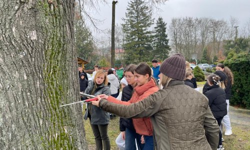 2025-11-20 Spotkanie uczniów z przedstawicielkami Lasów Janowskich W naszej szkole odbyło się spotkanie z przedstawicielkami Lasów Janowskich, które przybliżyły uczniom tajniki pracy w leśnictwie. Panie opowiedziały o codziennych obowiązkach leśnika, jego roli w ochronie przyrody oraz o ścieżkach kariery w tym zawodzie. Uczniowie mieli także okazję poznać ciekawostki dotyczące żubrów zamieszkujących Lasy Janowskie – ich trybu życia, zwyczajów oraz działań podejmowanych na rzecz ich bezpieczeństwa i zwiększania populacji. Podczas warsztatowej części spotkania wspólnie mierzyliśmy wiek drzew, poznając praktyczne metody pracy leśników i zasady oceny drzewostanu. Była to doskonała okazja, by w praktyczny sposób zobaczyć, jak fascynująca i odpowiedzialna może być praca w lesie. Dziękujemy naszym gościom za inspirujące spotkanie i cenną lekcję. czytaj dalej »