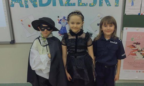 2025-11-28 Andrzejki w klasach 0–III 27 listopada uczniowie klas 0–III świętowali Andrzejki. Chętne dzieci przyszły w przebraniach, wprowadzając wszystkich w magiczny nastrój. Wychowawcy przygotowali tradycyjne andrzejkowe wróżby, w tym popularną wróżbę z ciasteczkiem, która wzbudziła wiele emocji. Nie zabrakło także wspólnej zabawy przy muzyce, która dodała wydarzeniu energii i radości. Zabawa upłynęła w świetnej atmosferze, a uczniowie z entuzjazmem uczestniczyli w przygotowanych atrakcjach. Dziękujemy wszystkim za udział w tym wyjątkowym dniu! czytaj dalej »