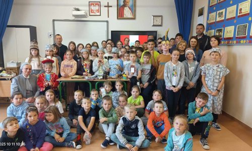 2023-10-14 Spotkanie z Siostrą Misjonarką Uczniowie naszej szkoły 11 października uczestniczyli w spotkaniu z siostrą Urszulą Myszak – misjonarką, która 13 lat spędziła w Peru. Siostra podczas swojego pobytu w Peru zajmowała się pracą z dziećmi, prowadziła działalność katechetyczną i posługę pielęgniarską. Siostra Urszula jest związana z Lubelszczyzną, ponieważ pochodzi z niewielkiej miejscowości położonej w okolicach Biłgoraja. Dzięki niej przedszkolaki oraz uczniowie klas I-VII mogli wybrać się w wirtualną podróż do daleko położonego Peru. Siostra Urszula opowiadała o codziennym życiu Peruwiańczyków oraz ich radościach i troskach, pokazując bardzo ciekawe zdjęcia, a także eksponaty przywiezione z Peru. Dzieci mogły posłuchać tradycyjnej muzyki peruwiańskiej, nauczyć się kilku hiszpańskich słów, przymierzyć piękne regionalne stroje mieszkańców tego kraju, a nawet zaśpiewać piosenkę w języku hiszpańskim. Spotkanie zakończyło się wspólnym odczytaniem wiersza „Każdy może zostać misjonarzem”. Dziękujemy siostrze Urszuli za wizytę w naszej szkole oraz za wirtualną podróż do tak pięknego i ciekawego kraju, jakim jest Peru. czytaj dalej »