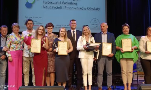 2023-05-30 „Śpiewać każdy może… Nauczyciel też!” Niejednokrotnie informujemy o udziale naszych uczniów w konkursach. Są to rozmaite przedsięwzięcia – na niższym lub wyższym szczeblu i o zróżnicowanej tematyce. Często kończą się one sukcesami, co za każdym razem staje się dla szkoły źródłem ogromnej radości oraz dumy. Zdarza się jednak – choć zdecydowanie rzadziej – że również nauczycielom przytrafia się okazja do spróbowania swoich sił w zmaganiach, których myślą przewodnią jest rozwijanie zainteresowań czy pasji. Kierując się tą ideą, Kuratorium Oświaty w Lublinie zorganizowało w tym roku I Wojewódzki Przegląd Twórczości Wokalnej Nauczycieli i Pracowników Oświaty. Celem wydarzenia było m.in. promowanie talentów wokalnych nauczycieli. Konkurs przebiegał w dwóch etapach. W pierwszym należało przesłać organizatorom nagranie MP4 z wykonaniem przygotowanej przez siebie piosenki. Jury dokonało oceny występów i wybrało uczestników, którzy zakwalifikowali się do ścisłego finału. Odbył się on na żywo z udziałem publiczności 29 maja 2023 roku w Zamojskim Domu Kultury. Na scenie zaprezentowali się wykonawcy z całego województwa. Dobór repertuaru okazał się różnorodny – od muzyki rozrywkowej, przez poezję śpiewaną, rockowe brzmienia, aż po muzykę klasyczną. W Jury zasiadali profesjonalni muzycy, m.in. przewodniczącym komisji konkursowej był znany na polskiej scenie muzycznej, charyzmatyczny wokalista – Piotr Cugowski. Zespół oceniający brał pod uwagę przede wszystkim: walory głosowe, dobór repertuaru, interpretację utworu, muzykalność, wyczucie rytmu oraz wyraz artystyczny. W nadmienionym powyżej przeglądzie wzięła udział nauczycielka języka polskiego z naszej szkoły – pani Agnieszka Farion, której muzyka towarzyszy od najmłodszych lat. Co ciekawe, jej przygoda ze śpiewaniem rozpoczęła się w naszej szkole, bo to właśnie tutaj polonistka stanęła na scenie po raz pierwszy, jako sześcioletnia uczennica. O tytuł najpiękniejszego głosu wśród nauczycieli i pracowników oświaty w koncercie finałowym rywalizowało aż 21 solistów, 3 duety i 2 zespoły. Byli to utalentowani wykonawcy prezentujący wysoki poziom kunsztu wokalnego i artystycznego. Pomimo ogromnej konkurencji, pani Agnieszka w zachwycający sposób wykonała poruszający utwór „Oczy tej małej”. Przejmujący tekst autorstwa Agnieszki Osieckiej połączony z przepięknym głosem i emocjonującą interpretacją naszej uzdolnionej pani polonistki sprawiły, że jej występ nie miał sobie równych. Pani Agnieszka Farion, jednogłośną decyzją Jury, została zwyciężczynią I Wojewódzkiego Przeglądu Twórczości Wokalnej Nauczycieli i Pracowników Oświaty. Jesteśmy niezmiernie dumni i serdecznie gratulujemy tak wielkiego osiągnięcia. Jednocześnie życzymy dalszych sukcesów, zarówno w pracy dydaktycznej, jak również w rozwoju talentu wokalnego. czytaj dalej »