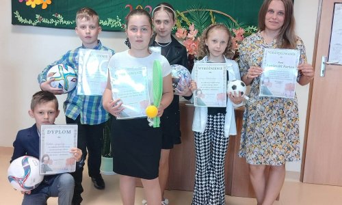 2023-06-20 Znamy mistrzów I edycji Szkolnych Konkursów Przedmiotowych! 20 czerwca w naszej szkole odbyło się podsumowanie I edycji Szkolnych Konkursów Przedmiotowych. Uczniowie klas IV-VI w drugim półroczu rywalizowali o tytuł Mistrza Języka Polskiego, Mistrza Matematyki oraz Mistrza Języka Angielskiego. Raz w miesiącu otrzymywali zestawy zadań, które należało rozwiązać i oddać do sprawdzenia. Po przeliczeniu punktów wyłoniono zwycięzców. Wyniki prezentują się następująco: Szkolny Mistrz Języka Polskiego – Maja Moskwa (kl. IV) Szkolny Mistrz Matematyki – Kamila Kamińska (kl. VI) Szkolny Mistrz Języka Angielskiego – Kamila Kamińska (kl. VI) Wszyscy uczestnicy konkursów otrzymali dyplomy oraz słodkie upominki, a laureaci dodatkowo nagrody rzeczowe. Gratulujemy i zachęcamy do wzięcia udziału w następnej edycji zmagań, która rozpocznie się już we wrześniu. czytaj dalej »
