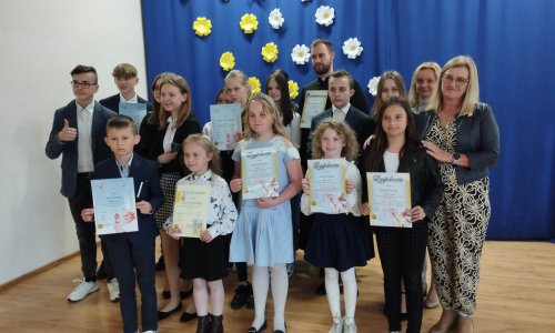 III miejsce – Weronika Bielak z kl. III. Dziewczynki otrzymały dyplomy i ciekawe nagrody. Ośmioro uczestników konkursu otrzymało nagrody za udział, a byli to: Habza Hanna i Kacper Krawiec z oddziału przedszkolnego, Grzywna Ola, Miksza Miłosz, Blacha Przemek z kl. I, Galant Michał i Grzywna Kacper z kl. II oraz Dubaj Weronika z kl. III. Wszystkim serdecznie gratulujemy i życzymy dalszych sukcesów.