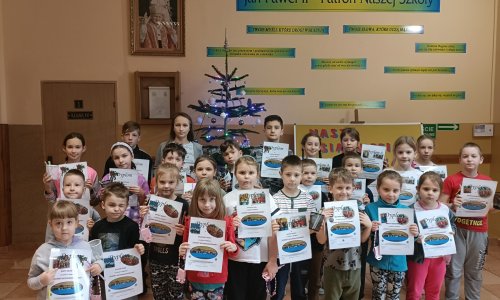 2023-01-10 Konkurs plastyczny „Ozdoby bożonarodzeniowe” Z okazji Świąt Bożego Narodzenia w naszej szkole został zorganizowany konkurs plastyczny pod hasłem „Ozdoby bożonarodzeniowe”. Uczestnicy czyli przedszkolaki i uczniowie klas I – VI wykonali piękne prace wśród których były stroiki, choinki, bałwanki, bombki, gwiazdy oraz szopki. Do ich wykonania dzieci wykorzystały różnorodne materiały i techniki. Wszystkie prace były piękne, ciekawe i pracochłonne. W związku z tym komisja postanowiła nagrodzić każdego uczestnika.