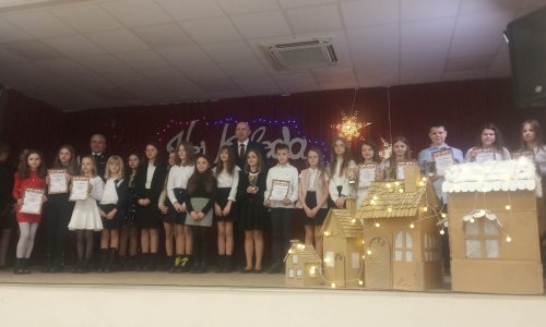 2023-01-10 Powiatowy konkurs kolęd zakończony sukcesami naszych uczennic 5 stycznia w Aleksandrowie odbył się II POWIATOWY KONKURS KOLĘD I PIOSENEK ŚWIĄTECZNYCH W JĘZYKU POLSKIM, ANGIELSKIM I NIEMIECKIM. Przedsięwzięcie zorganizowała Szkoła Podstawowa im. Dzieci Zamojszczyzny w Aleksandrowie. Celem wydarzenia było przede wszystkim kultywowanie tradycji śpiewania kolęd i piosenek o tematyce bożonarodzeniowej oraz promowanie aktywności twórczej młodego pokolenia. W konkursie mogli wziąć udział uczniowie klas IV- VIII szkół podstawowych powiatu biłgorajskiego. Uczestników oceniano w dwóch kategoriach wiekowych: klasy IV-VI oraz klasy VII-VIII. W festiwalu wzięły udział dwie uczennice naszej szkoły – Lena Leśniewska (kl. IV) i Julia Leśniewska (kl. VIII). Jesteśmy bardzo dumni, ponieważ obydwie dziewczyny zostały laureatkami konkursu – każda zajęła II miejsce w swojej kategorii wiekowej.