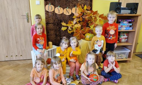 2022-11-04 "Dzień Dyni" w przedszkolu W piątek 28 października w naszym przedszkolu obchodziliśmy „Święto Dyni”. Każdy z przedszkolaków tego dnia przyniósł do przedszkola dynię, co pozwoliło nam stworzyć w naszej sali wspaniałą dekorację. Nasze przedszkolaki były ubrane na pomarańczowo. Ten dzień wypełniony był licznymi zabawami integracyjnymi. Ponadto przedszkolaki dokładnie „badały” dynię - jej ciężar, wygląd zewnętrzny i wewnętrzny. Porównywały również zgromadzone dynie pod względem koloru, kształtu i ciężaru. Twórczym działaniem były nasze prace plastyczne z dynią w roli głównej. czytaj dalej »