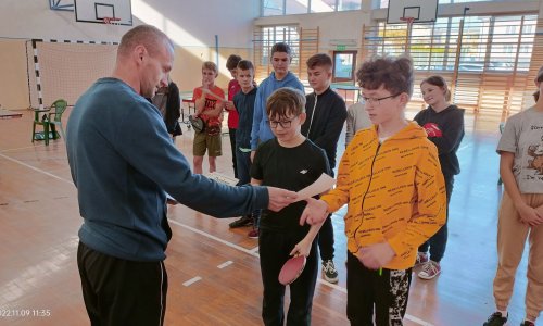 2022-11-12 Awans drużyny chłopców w tenisie stołowym 9 listopada w Goraju odbyły się zawody w drużynowym tenisie stołowym: rocznik 2008-2009. Naszą szkołę reprezentowały drużyny w składzie: dziewczęta - Małgorzata Furlepa i Wiktoria Socha, chłopcy - Jakub Komada i Bartłomiej Skórzak. Po zaciętych i pełnych emocji pojedynkach okazało się, że dziewczęta zajęły miejsce III, a chłopcy miejsce II, co dało im awans do zawodów powiatowych. Gratulujemy chłopakom i życzymy im powodzenia w Lipinach Dolnych. czytaj dalej »