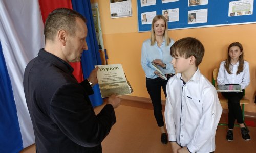 Nagrody książkowe oraz pamiątkowe dyplomy ufundowane przez sponsora, zostały wręczone zwycięzcom przez dyrektora Stanisława Saja podczas akademii szkolnej. Wszystkim uczniom dziękujemy za udział w konkursie, zwycięzcom gratulujemy!