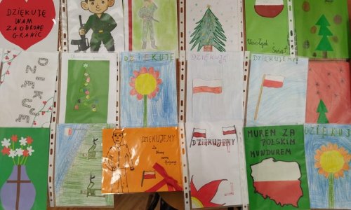 2021-12-09 Obrońcom granic „Akcja dla Obrońców Granic” to zaproszenie Fundacji Niepodległości, Lubelskiego Kuratorium Oświaty oraz 2 Lubelskiej Brygady Obrony Terytorialnej im. mjr Hieronima Dekutowskiego „Zapory” do wykonania przez uczniów laurek, kartek z życzeniami, obrazków. Akcja ma na celu wyrażanie społecznego wsparcia, wdzięczności oraz sympatii dla żołnierzy wojsk operacyjnych Sił Zbrojnych RP, żołnierzy Wojsk Obrony Terytorialnej, funkcjonariuszy Straży Granicznej oraz Policji pełniących służbę w zagrożonych miejscach polskiej granicy.