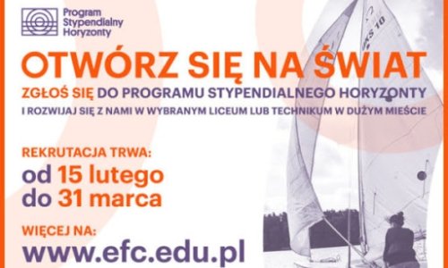 Stypendium kierowane jest do młodych ludzi, którzy pochodzą z małych miejscowości i chcą się dalej rozwijać i uczyć w wybranych, dobrych szkołach w dużych miastach w Polsce. Stypendium pokrywa koszty zamieszkania w bursie, wyżywienia, wycieczek szkolnych oraz biletów komunikacji miejskiej przez cały okres nauki w szkole średniej. Zaproszenie Fundacji kierowane jest do uczniów klas VIII, kończących w tym roku szkołę podstawową, którzy mieszkają w miejscowościach do 30 tysięcy mieszkańców, a dochód w ich rodzinach nie przekracza 1200 złotych netto na osobę. Wyniki w nauce powinny wskazywać na możliwość dostania się do jednego z 19 liceów lub techników, z którymi współpracuje Fundacja EFC. Rekrutacja do programu trwa do 31 marca.