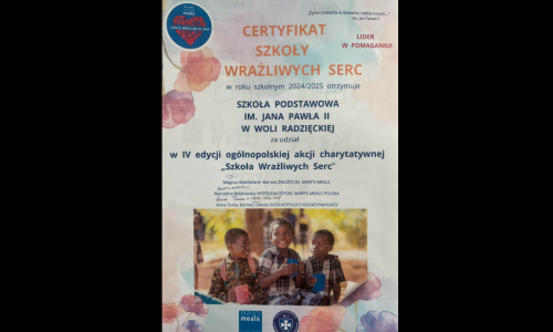 2025-09-04 Certyfikat "Szkoły Wrażliwych Serc" . czytaj dalej »