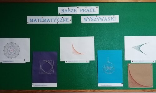 2020-11-03 Wyszywanki matematyczne, czyli sztuka kreślenia nitką Kilka chętnych uczennic z klas starszych poświęciło swój wolny czas, aby zaprezentować matematyczny haft. Każdy może wykonać go sam. Przed przystąpieniem do wyszywania należy przygotować: linijkę, ołówek, cyrkiel oraz oczywiście igłę i kolorowe nici. Haft wykonuje się na twardym podłożu, np. na kartce z bloku technicznego lub kolorowym kartonie, brystolu czy tekturze. Na przygotowanym papierze rysujemy wielokąty, a następnie przy pomocy linijki rozmieszczamy, a przy pomocy cyrkla nakłuwamy, dziurki. Odległość między nimi decyduje o gęstości rozmieszczenia nici. Elementem malującym jest odpowiednio naciągnięta nitka, czyli odcinek – jedna z podstawowych figur geometrycznych. Za pomocą tylko i wyłącznie odpowiednio rozmieszczonych odcinków tworzy się mniej lub bardziej złożone figury geometryczne. Aby wyszyć kąt wypukły należy na lewej stronie kartki na ramionach kąta, w jednakowych odstępach, najlepiej np. co 2-5 mm, nakłuć dziurki. Na każdym z ramion tyle samo. Następnie odwracamy kartkę na drugą stronę. Nitkę poprowadzimy od dziurki położonej najbliżej wierzchołka na jednym ramieniu do tej najbardziej odległej na drugim ramieniu kąta, poruszając się o jedno pole w górę i o jedno pole w dół. Z kątów można wykonać różnego rodzaju kompozycje. Poniżej znajduje się galeria zdjęć przedstawiających prace naszych uczennic. czytaj dalej »