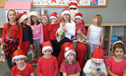 2019-12-09 Mikołajki w naszej szkole Imieniny świętego Mikołaja są co roku doskonałą okazją do oderwania się od rutynowego szkolnego planu dnia. Dla wielu uczniów mikołajki to jeden z najprzyjemniejszych dni w trakcie roku szkolnego. Zgodnie z tradycją 6 grudnia dzieci z klas 0-III spotkały się ze świętym Mikołajem. Tego dnia dzieci ubrały się na czerwono i założyły mikołajkową czapkę albo rogi renifera. Święty Mikołaj zawitał w szkolne progi około i dla każdego przyniósł różnorodne słodkości i zabawki. Uczniowie przygotowali dla Mikołaja w podzięce za dary, krótkie wierszyki i piosenki. Każdy tego dnia był uśmiechnięty i miał dobry humor. czytaj dalej »