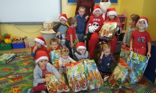 2019-12-10 Święty Mikołaj z wizyta u przedszkolaków Święty Mikołaj lubi odwiedzać dzieci w każdym miejscu na całym świecie. 6 grudnia z workiem pełnym prezentów przyjechał również do naszego przedszkola. Po śniadaniu dzieci nadsłuchiwały dźwięku dzwoneczków, które słychać było już z daleka. Był to znak, że do przedszkola zbliża się Święty Mikołaj. Przedszkolaki były bardzo szczęśliwe, rozpromienione, a kiedy znalazły się blisko św. Mikołaja – troszkę zawstydzone. Oprócz pełnego prezentów worka św. Mikołaj przywiózł ze sobą dużo uśmiechu. Rozmawiał z dziećmi, zachęcał ich, aby były grzeczne, słuchały rodziców i pań w przedszkolu. Na zakończenie Święty Mikołaj wszystkim przedszkolakom wręczył duże paczki, a w nich – dla każdego coś dobrego! Za prezenty dzieciaki odwdzięczyły się pięknie zaśpiewaną piosenką „To Mikołaj Święty”. Oczekiwana cały rok wizyta św. Mikołaja minęła w bardzo miłej atmosferze i przyniosła naszym kochanym przedszkolakom wiele radości. Ten wyjątkowy dzień uatrakcyjniły również zajęcia o Świętym Mikołaju. Dzieci na początku grzecznie wysłuchały listu od Św. Mikołaja, następnie brały udział w mikołajowych zabawach. Na koniec wykonały piękne prace plastyczne. Do zobaczenia za rok Święty Mikołaju :) czytaj dalej »