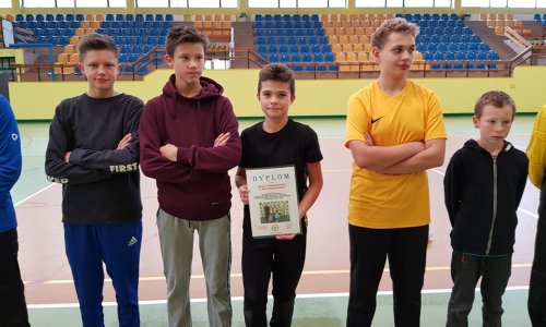 2019-12-11 Halówka w ZSBiO w Biłgoraju W Zespole Szkół Budowlanych i Ogólnokształcących 10 grudnia toczyła się rywalizacja w piłce nożnej halowej o puchar Dyrektora ZSBiO w Biłgoraju. W zawodach zmagali się uczniowie szkół podstawowych z terenu powiatu biłgorajskiego. Była tam również nasza reprezentacja w składzie: Rafał Czajka, Paweł Rapa, Kacper Rapa, Paweł Kwiatkowski i Mateusz Spólnik. W wyniku losowania drużyny zostały podzielone na grupy. Naszej drużynie przypadło grać z Księżpolem i Łukową. Pierwszy pojedynek z Łukową wygrywamy 3:0, a drugi remisujemy 0:0 i zajmujemy pierwsze miejsce w grupie awansując do półfinału. Niestety z powodu braku rezerwowych zawodników gramy cały turniej jednym składem, co przekłada się na dalsze wyniki. Już w półfinale było widać brak sił i zmęczenie. Niedokładne zagrania i brak powrotu do obrony zadecydowały o porażce i grze o 3 miejsce. W pojedynku o najniższy stopień podium było już tylko gorzej. Pomimo wielkiego zmęczenia, naszym chłopakom nie można odmówić zaangażowania i woli walki. Każdy na boisku dał z siebie wszystko a w bramce świetne zawody rozegrał Mateusz, który swoimi interwencjami pokazał, że zna się na tym fachu. Ostatecznie przegrywamy i zajmujemy 4 miejsce. Jednak naszej drużynie należą się wielkie słowa uznania za ten turniej. Rozegrali cztery mecze 2x10 min w jednym składzie a każdy z opiekunów innych drużyn był dla nich pełen podziwu. czytaj dalej »