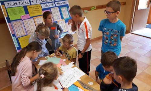 2018-09-29 Dzień tabliczki mnożenia 28 września uczniowie naszej szkoły obchodzili VIII Światowy Dzień Tabliczki Mnożenia. To matematyczne święto weszło na stałe do naszego szkolnego kalendarza. W tym dniu „młodsi sprawdzają, czy starsi tabliczkę mnożenia znają." Sporo emocji wywołały egzaminy przeprowadzane podczas przerw przez Komisje Egzaminacyjne oraz specjalne uczniowskie Patrole Egzaminacyjne. Ze znajomości tabliczki zostali przepytani wszyscy chętni - uczniowie, nauczyciele oraz inni pracownicy szkoły. W akcji tej wzięły udział klasy IV-VIII. 45 uczniów uzyskało tytuł Eksperta Tabliczki Mnożenia. Najlepszą znajomością tabliczki mnożenia wykazali się nauczyciele i pracownicy szkoły oraz klasa V, VI i VIII. czytaj dalej »