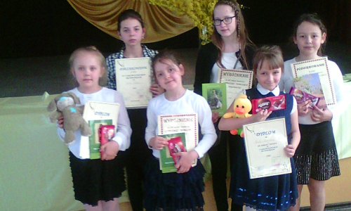 2018-04-24 Prezentacje recytatorskie na etapie gminnym 20 kwietnia w MGOK we Frampolu nasze uczennice prezentowały przed publicznością i jury wybrane utwory w dwu konkursach recytatorskich. Jako pierwszy odbył się 37. Mały Konkurs Recytatorski, w którym Julia Leśniewska z kl.III, recytując wiersz "Cygan i Baba" A. Fredry, zdobyła II nagrodę; natomiast Kamila Kamińska z kl. I zdobyła III nagrodę, obie wezmą udział w etapie powiatowym. Podziękowanie otrzymała Monika Brytan z kl. VI. Po przerwie na słodki poczęstunek dzieci wzięły udział w XIV edycji Konkursu Recytatorskiego Literackiej Twórczości Regionalnej. Spośród licznej grupy uczestników jury wyłoniło najlepszych, wśród których Julia Leśniewska i Julia Kaproń z kl. III oraz Wiktoria Kaziród z kl. VII otrzymały wyróżnienie. Podziękowanie otrzymała Natalia Kaproń z kl. V. czytaj dalej »