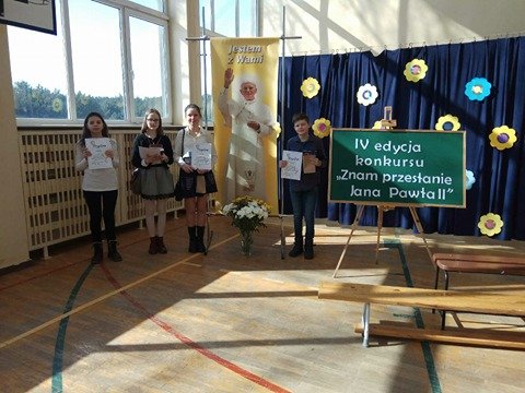 2018-03-23 "Znam przesłanie Jana Pawła II" "Znam przesłanie Jana Pawła II" to hasło konkursu wiedzy o Janie Pawle II, który odbył się 22 marca w Zespole Szkół Samorządowych w Tereszpolu Zaorendzie. Wśród 44 uczestników byli także nasi uczniowie: Monika Brytan i Rafał Czajka z klasy VI oraz Julia Czajka i Wiktoria Kaziród z klasy VII. Bardzo dobrą znajomością treści oraz przesłania związanego z naszą ojczyzną pozostawionego nam przez Jana Pawła II wykazała się Wiktoria Kaziród, która zajęła wysokie III miejsce w kategorii klas VII i gimnazjum. czytaj dalej »