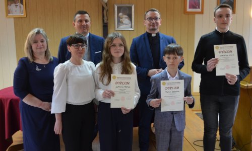2025-05-10 Piotr laureatem XXXII Diecezjalnego Konkursu Wiedzy o Biblii i Kościele 7 maja odbył się etap finałowy XXXII Diecezjalnego Konkursu Wiedzy o Biblii i Kościele. Do etapu diecezjalnego zakwalifikowało się 38 uczniów z dwóch kategorii wiekowych. Uczniowie przystąpili do testu wiedzy, który pozwolił wyłonić zwycięzców konkursu. W gronie laureatów w kategorii klas VII-VIII znalazł się uczeń naszej szkoły Piotr Grzywna z kl. VII, który wykazał się ogromną wiedzą zdobywając trzecie miejsce. Wszyscy finaliści oraz katecheci otrzymali podziękowania i upominki, a laureaci cenne nagrody rzeczowe. Serdecznie gratulujemy Piotrkowi i życzymy mu kolejnych sukcesów. czytaj dalej »