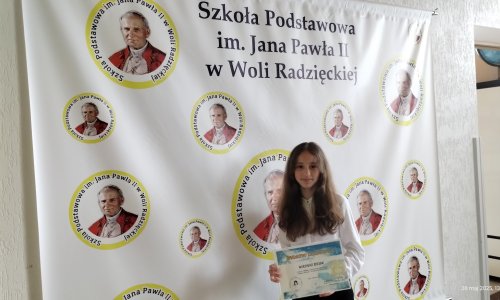 2025-05-26 Sukces Piotra Grzywny w Wojewódzkim Konkursie Wiedzy o Janie Pawle II 20 maja 2025 r. w Szkole Podstawowej im. Św. Jana Pawła II w Michalowie odbył się finał V Wojewódzkiego Konkursu Wiedzy o Janie Pawle II pt. „Jan Paweł II Wielki 1920–2005”. Wydarzenie objęte było patronatem Kurii Diecezji Zamojsko–Lubaczowskiej oraz Rodziny Szkół im. Jana Pawła II.